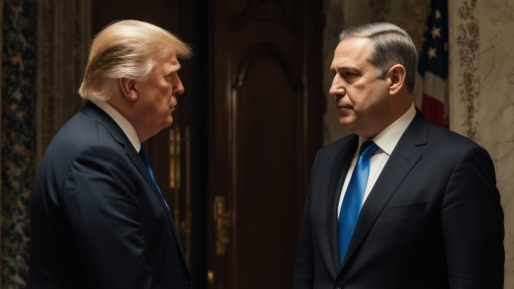 Trump (sedí v kresle, rukami rozhadzuje široko do strán): Bibi, počúvaj. Som priateľ Izraela, najlepší akého kedy Izrael mal. Nikto preň neurobil viac ako ja. Aj Iránu som dal zelenú. Ale tie účty za vojenskú techniku? Vyzerajú ako rozpočet na kolonizovanie Marsu. Moja idea je „MAGA“ a nie „Rakety zadarmo navždy“.